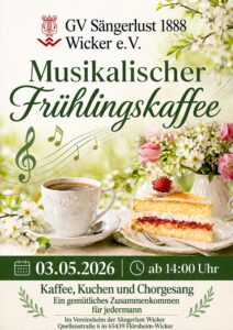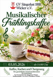Kaffee – Kuchen – Chorgesang Wir laden ein zum Musikalischen Frühlingskaffee am Sonntag, 3. Mai ab 14:00 Uhr im…